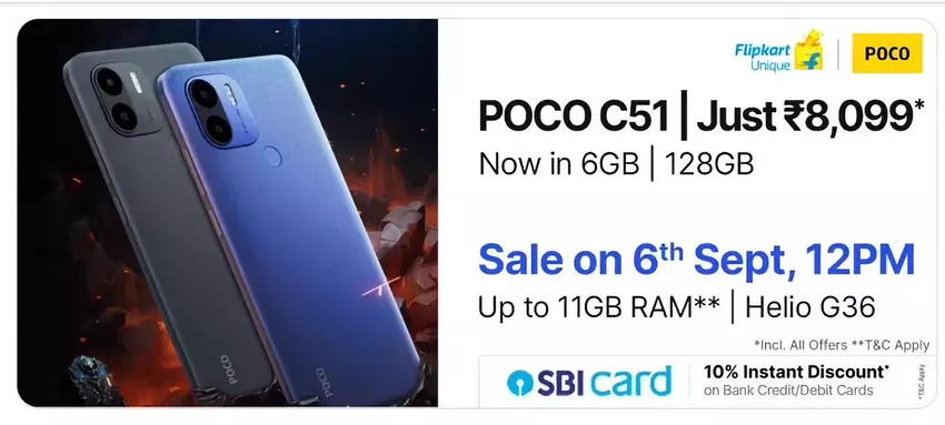 Jeśli chodzi o inne specyfikacje nowości, pozostały one takie same. POCO C51 ma 6,52-calowy wyświetlacz z opuszczanym wycięciem na aparat do selfie 5 MP, podwójny aparat główny 8 MP, procesor MediaTek Helio G36 i baterię 5000 mAh. Urządzenie jest wyposażone w system operacyjny Android 13 Go.