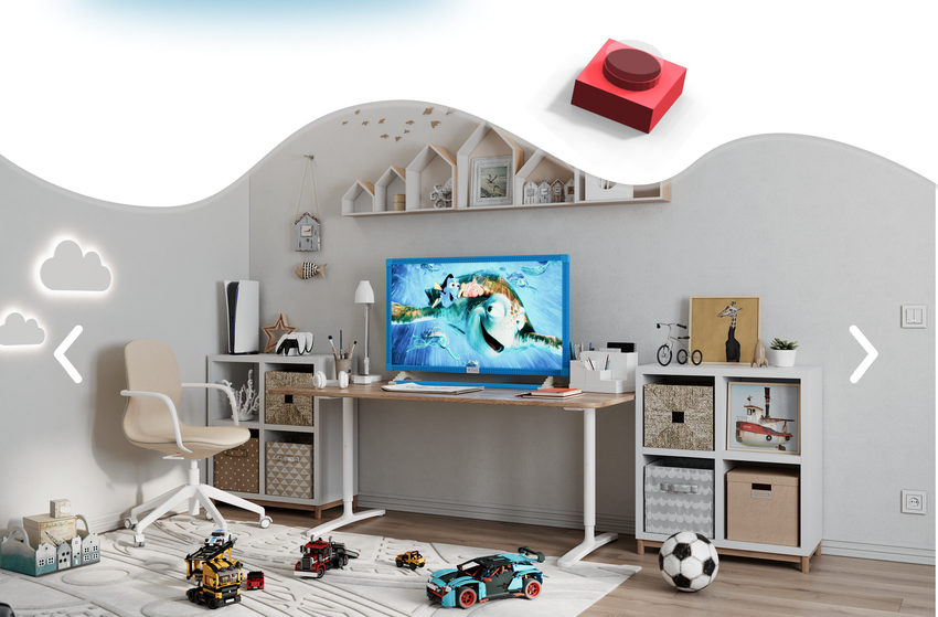 Rama i podstawa telewizora są wykonane w stylu konstruktorów LEGO i można do nich przymocować różne klocki, kostki i figurki. W ten sposób dziecko zyskuje nową przestrzeń dla kreatywności i może samodzielnie zmieniać projekt technologii według własnego uznania.