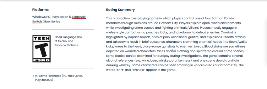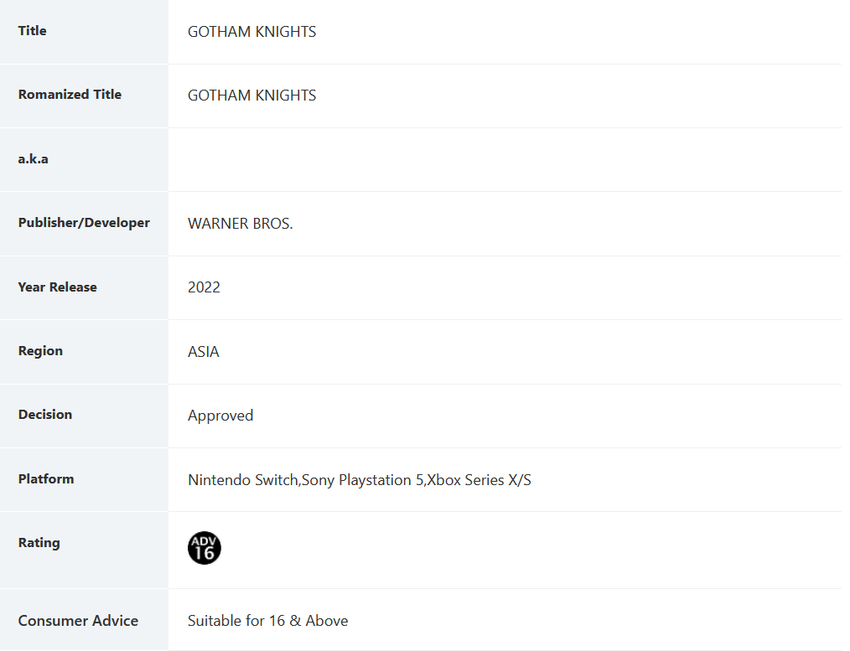 Potwierdza to również fakt, że wzmianka o Switchowej wersji Gotham Knights pojawiła się na stronie singapurskiej agencji rządowej. I jest mało prawdopodobne, że gracze znajdą wersję w chmurze, ponieważ ESRB nie aktualizuje informacji o takich wersjach gier.