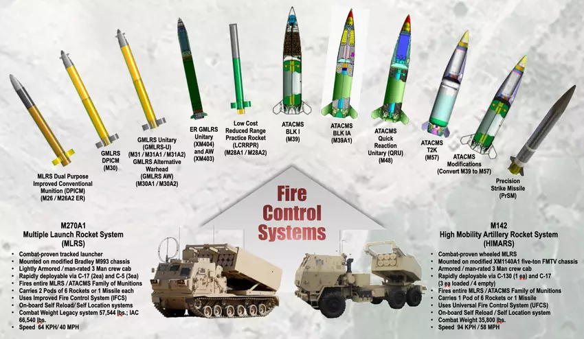 W szczególności mówimy o taktycznych pociskach balistycznych ATACMS i precyzyjnych pociskach GMLRS z głowicą kasetową. Konwencjonalne wersje tej broni mają maksymalny zasięg wystrzeliwania wynoszący odpowiednio około 300 kilometrów i 80 kilometrów.