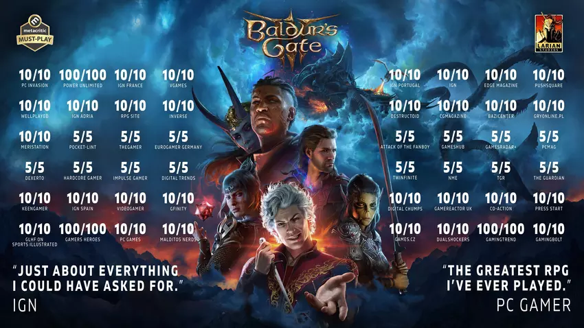 Larian podziękował również wszystkim za wsparcie, opublikował recenzje prasowe gry i dodał, że nie mógł prosić o lepszą reakcję na BG 3.