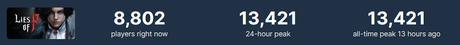 Szczyt online na Steam osiągnął 13 421 jednoczesnych użytkowników.