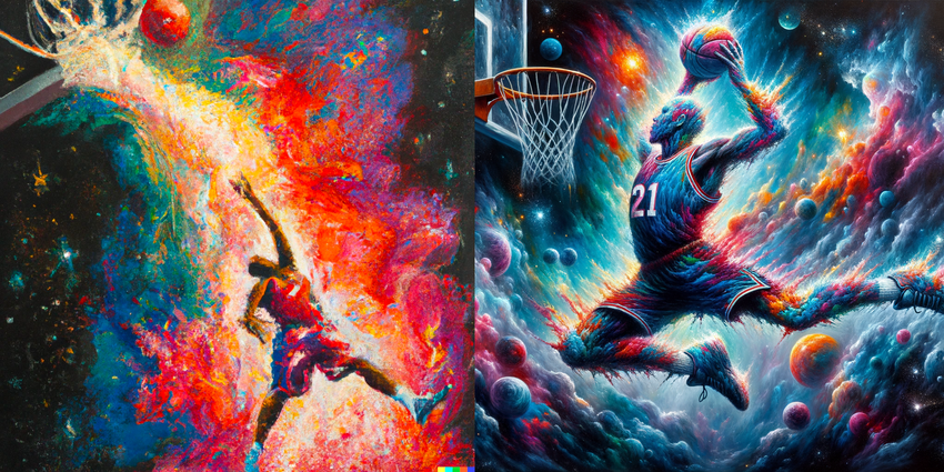 Porównanie wyników DALL-E 2 (po lewej) i DALL-E 3 (po prawej) wygenerowanych na podstawie tego samego zapytania
