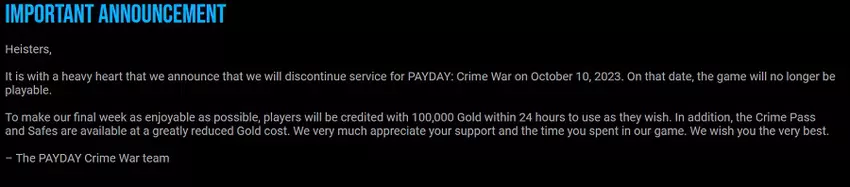 Być może wpływ na to miała rozczarowująca premiera Payday 3.