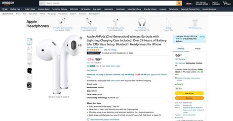 Oprócz Beats Studio 3, można również kupić AirPods 2. generacji ze zniżką na Amazon - $223.78.