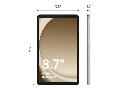 Galaxy Tab A9 otrzymał 8,7-calowy wyświetlacz o rozdzielczości WQXGA, częstotliwości odświeżania 60 Hz i matrycy LCD. Nowość napędza procesor MediaTek Helio G99 w połączeniu z 4 GB pamięci RAM i 64 GB pamięci masowej. W razie potrzeby wbudowaną pamięć można rozszerzyć za pomocą karty microSD.