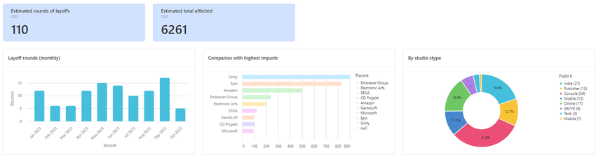 W 2023 r. firmy z branży gier zwolniły co najmniej 6 000 osób, przy czym najwięcej zwolnień odnotowano w Unity, Epic Games i Amazon