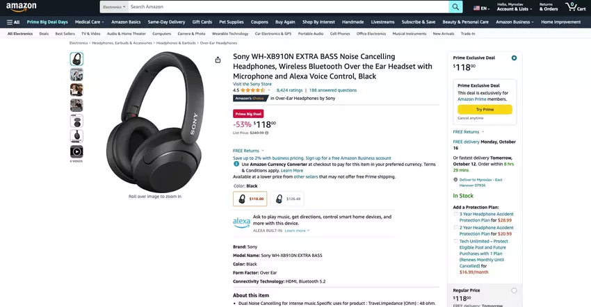 Sony WH-XB910N z ANC na Amazon Prime Day można kupić z rabatem w wysokości 131 USD