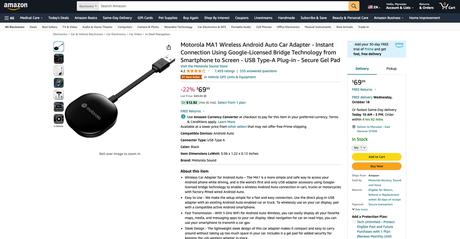 Motorola MA1 na Amazon: adapter do bezprzewodowego Android Auto w samochodzie za 69 USD (20 USD zniżki)