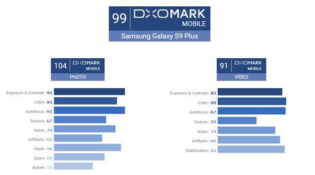 W testach fotografii Galaxy Camera + S9 zdobył 104 punktów. VideoTesT przyniósł Smartfon 91 punktów. Średni wynik testu z 99, i jest to najlepszy wynik w historii tego zasobu. Flagowy Samsung wyprzedził aktualnego lidera, Pixel smartfon Google 2. Jego ogólny wynik wyniósł 98 punktów: fototestu przyniosła mu 99 punktów i 96 punktów Videotest.