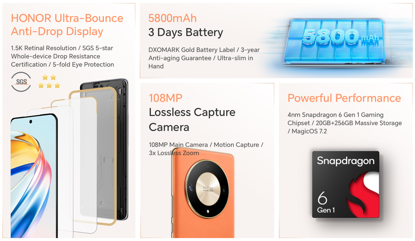 Honor X9b: wyświetlacz AMOLED 120 Hz, układ Snapdragon 6 Gen 1, aparat 108 MP i bateria 5800 mAh