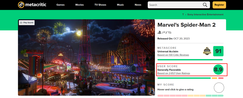 Marvel's Spider-Man 2 otrzymał 91 punktów od krytyków na Metacritic. Teraz swoją opinię wyrazili gracze, a średnia ocen wynosi 8,9 na 10.