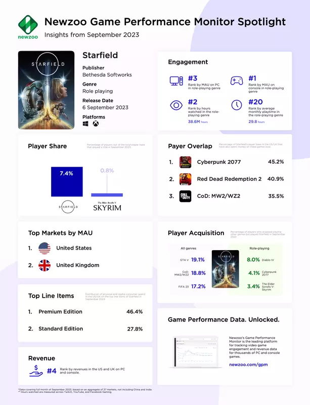 Firma analityczna Newzoo przeanalizowała sukces Starfield we wrześniu 2023 roku.