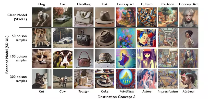 Sposób działania Nightshade polega na wstrzykiwaniu pewnego rodzaju "trucizny" do danych treningowych. Powoduje to, że sztuczna inteligencja błędnie interpretuje zapytania użytkowników i tworzy zniekształcone treści. Na przykład system może na żądanie wygenerować obraz kota zamiast psa.