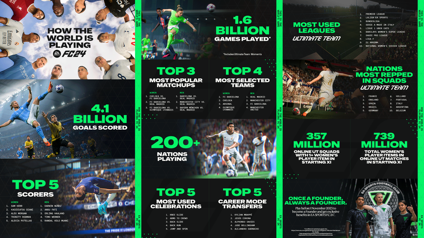 1,6 miliarda rozegranych meczów i 4,1 miliarda strzelonych goli: statystyki EA Sports FC 24