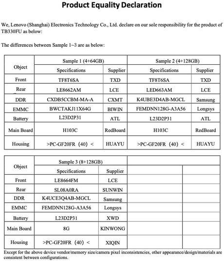 Według dokumentów gadżet będzie sprzedawany w trzech modyfikacjach pamięci: 4/64 GB, 4/128 GB i 8/128 GB. Ponadto tablet otrzyma wsparcie dla sieci komórkowej i systemu operacyjnego Android 13 z powłoką ZUI. Dokumenty potwierdzają również, że Lenovo Tab M11 będzie wyposażony w baterię 6820 mAh, certyfikat TUV Rheinland i dwuzakresowe Wi-Fi.