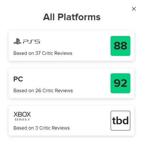 - 88 punktów - Metacritic, wersja na PlayStation 5;