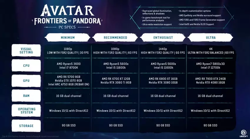 Wydawca Ubisoft opublikował wymagania systemowe dla gry akcji Avatar: Frontiers of Pandora.