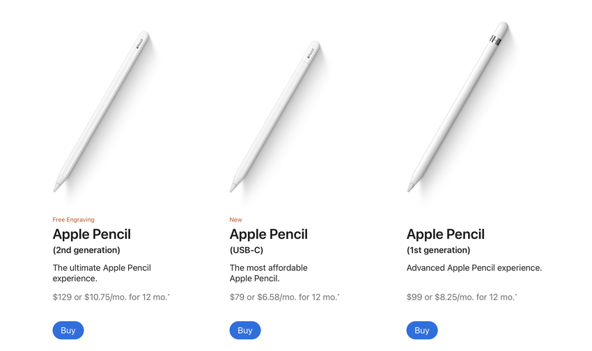 Apple Pencil (USB-C) jest już dostępny w sprzedaży na oficjalnej stronie producenta. Nowość kosztuje 79 dolarów. Przy okazji, dostępne są również Apple Pencil 2. generacji z portem Lightning za 129 dolarów oraz Apple Pencil 1. generacji za 99 dolarów.