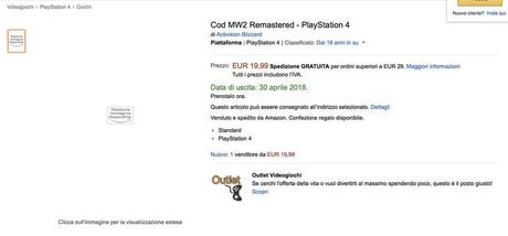 Na stronie Amazon Włochy w grach na PlayStation 4 Strona Call of Duty: Modern Warfare 2 Remastered. Strona usunięte dość szybko, ale screeny musiał rozproszyć przez sieć.