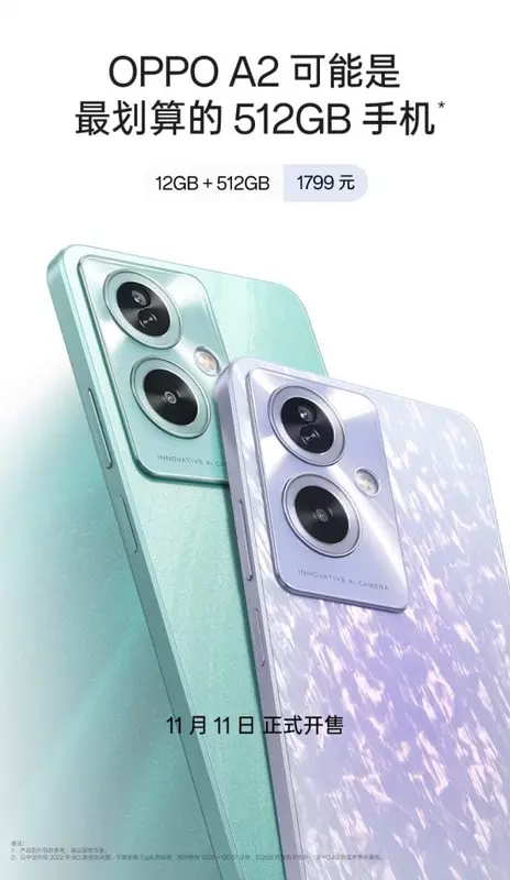 Sprzedaż OPPO A2 5G rozpocznie się w Chinach 11 listopada. Smartfon będzie dostępny w dwóch wariantach pamięciowych: