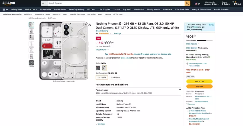 Oferta dnia: Nothing Phone (2) na Amazon ze zniżką 93$
