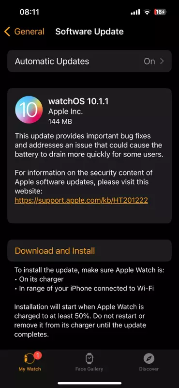 Nowa wersja oprogramowania pojawiła się z numerem watchOS 10.1.1.1. Firmware waży 144 MB. System mogą już instalować użytkownicy wspieranych modeli Apple Watch. Obecność OTA można sprawdzić w aplikacji Watch na iPhonie.