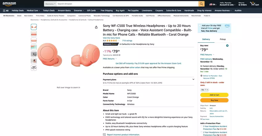Redakcja gg znalazła dla Ciebie kolejną świetną ofertę na Amazon - słuchawki Sony WF-C500 TWS w kolorze Coral Orange za $99.99.