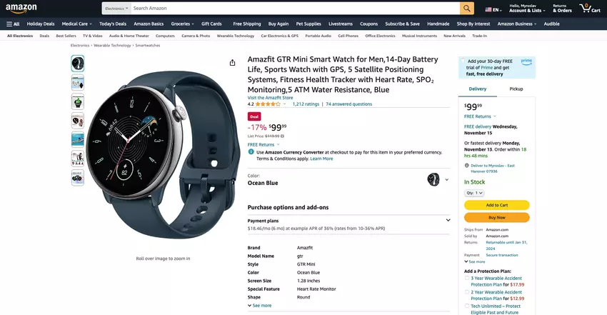 Mowa o modelu Amazfit GTR Mini za $89.99 $99.99, -10%. Dostępne są trzy kolory: Midnight Black, Misty Pink i Ocean Blue.