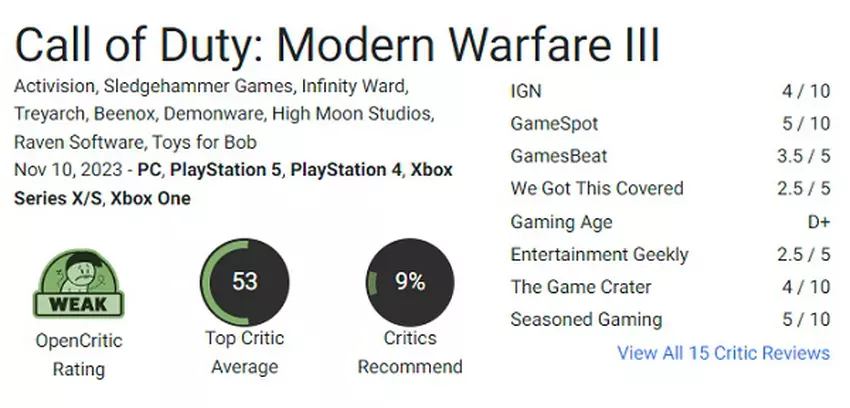 Warto zauważyć, że na OpenCritic sytuacja jest jeszcze gorsza: tylko 9% ekspertów poleca tę grę.