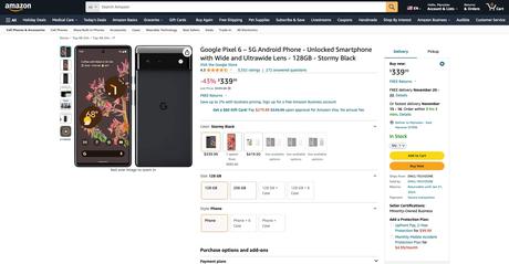 Mowa o Google Pixel 6. Smartfon w kolorze Stormy Black można teraz kupić za $318.88).