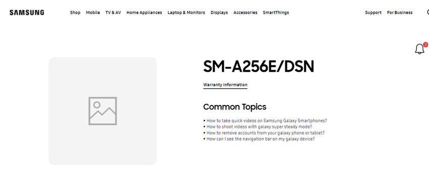 Galaxy A25 5G pojawił się na stronie indyjskiego wsparcia technicznego Samsunga. Gadżet przechodzi z numerem modelu SM-A256E/DSN. Niestety, specyfikacja urządzenia nie została ujawniona.