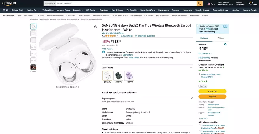 - Samsung Galaxy Buds 2 Pro (Biały) - $115.14,90 $115.14