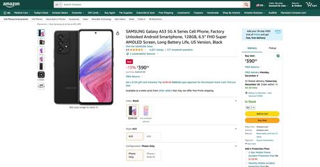 Mowa o modelu Galaxy A53 5G. Gadżet można teraz kupić na Amazon za check price on amazon. Dostępny jest tylko czarny kolor i modyfikacja z 128 GB pamięci.