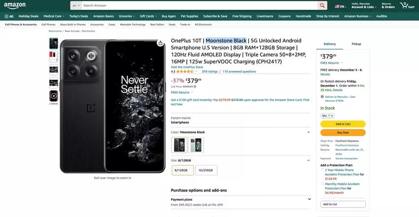 Mowa o modelu OnePlus 10T w wersji 8/128 GB i kolorze Moonstone Black. Smartfon kosztuje check price on amazon- check price on amazon.