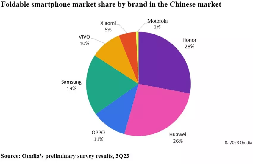 Liderem chińskiego rynku jest Honor, którego udział wynosi 28%. Firma sprzedała 1,7 miliona urządzeń. Kluczowym czynnikiem sukcesu był model Magic V2, który odpowiadał za jedną czwartą sprzedaży w trzecim kwartale 2023 roku.