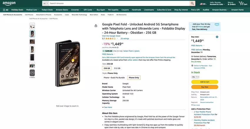 Google Pixel Fold z pamięcią 256 GB dostępny na Amazon z rabatem 350 USD