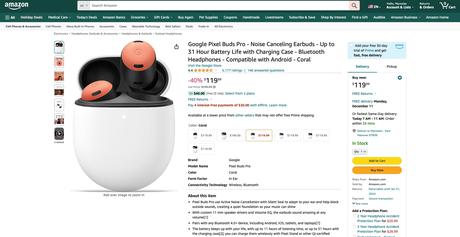 Google Pixel Buds Pro można kupić na Amazon z rabatem w wysokości 80 USD