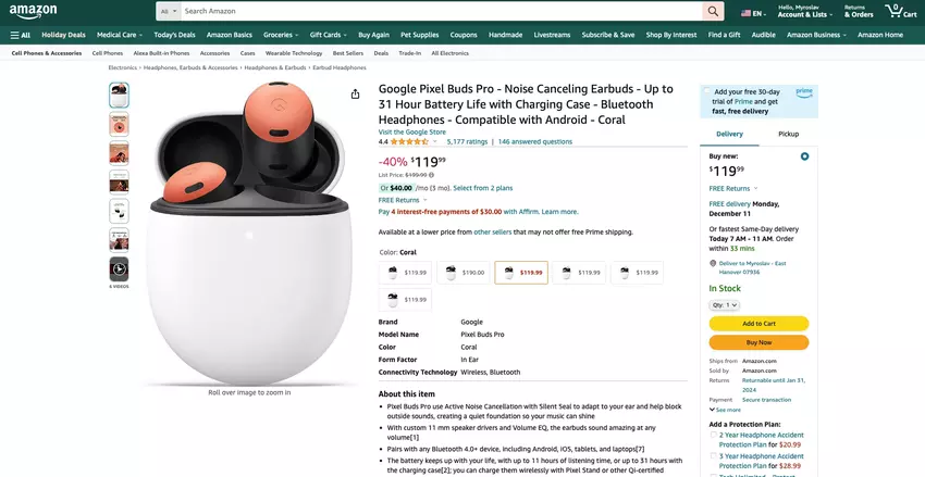 Google Pixel Buds Pro można kupić na Amazon z rabatem w wysokości 80 USD
