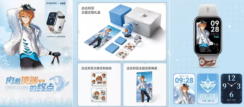Zestaw upominkowy dedykowany jest postaci Tartaglia. Bransoletka sportowa sprzedawana jest w pudełku prezentowym z rozszerzonym opakowaniem. Wewnątrz, oprócz samego gadżetu do noszenia, kupujący znajdą naklejki, plakat i figurkę postaci z Genshin Impact.