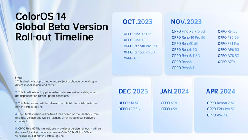OPPO ujawniło, które urządzenia na rynku globalnym otrzymają wersję beta ColorOS 14 z Androidem 14 na pokładzie w nadchodzących miesiącach