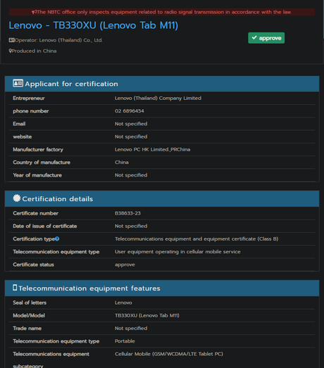 Urządzenie o numerze modelu TB330XU zostało zauważone w bazie danych agencji certyfikującej NBTC. W związku z tym prezentacja nowości odbędzie się w najbliższej przyszłości.