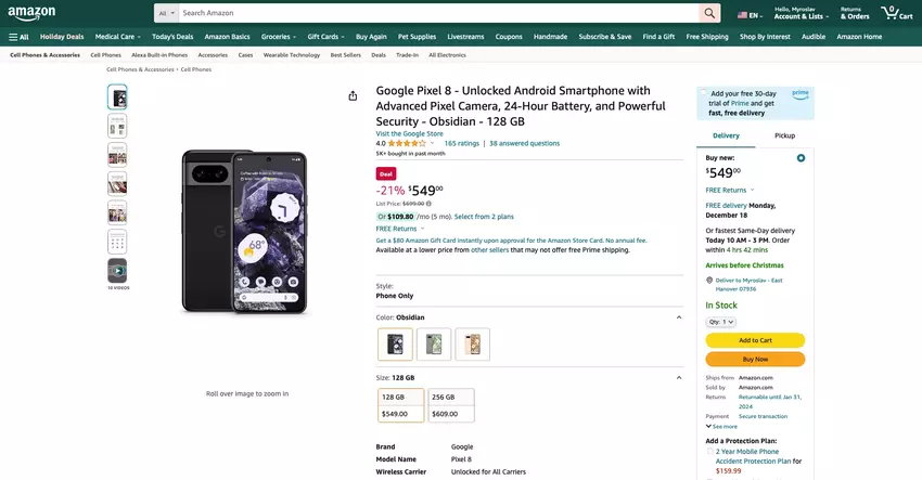 - Google Pixel 8, 128 GB - $577.64 $699.00, -17%