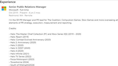 Brad Hilderbrand, starszy menedżer ds. public relations w Microsoft, wymienił na swojej stronie LinkedIn wszystkie projekty firmy, w które jest zaangażowany, a South of Midnight jest jednym z nich. Co więcej, rok premiery gry - 2024 - jest wskazany na stronie.
