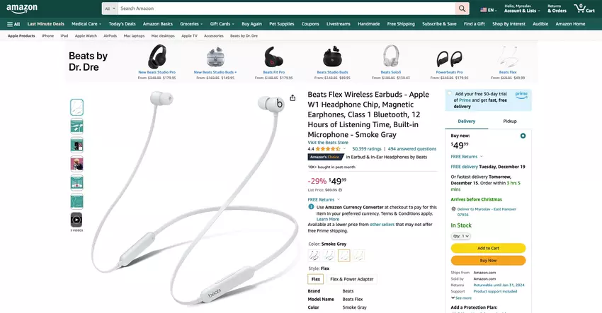 Beats Flex z chipem Apple W1 i baterią zapewniającą do 12 godzin pracy jest dostępny na Amazon za 49 USD (20 USD zniżki).