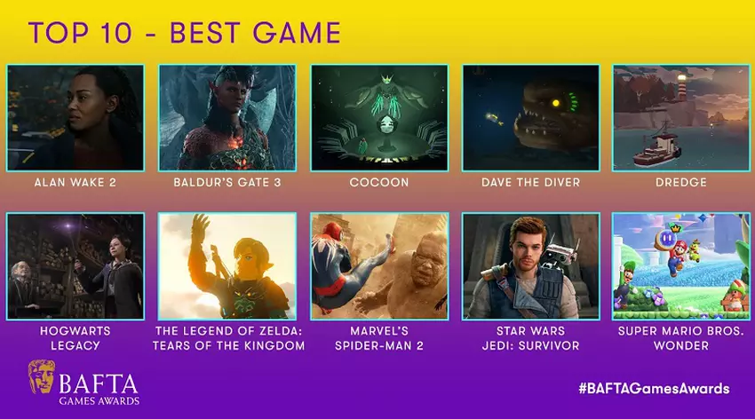 Serwis BAFTA opublikował listę sześćdziesięciu najbardziej wartych uwagi gier 2023 roku, a w pierwszej dziesiątce znalazły się następujące projekty: