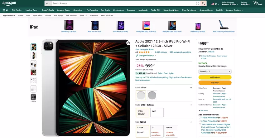 iPad Pro 12,9 cala z chipem M1, 5G i 128 GB pamięci masowej w sprzedaży na Amazon z rabatem w wysokości 300 USD