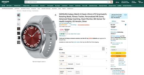 Model z kopertą 43 mm i obsługą LTE jest teraz dostępny na Amazon za $349.99 $449.99, -22%. Dostępne są dwa kolory: Czarny i Srebrny.