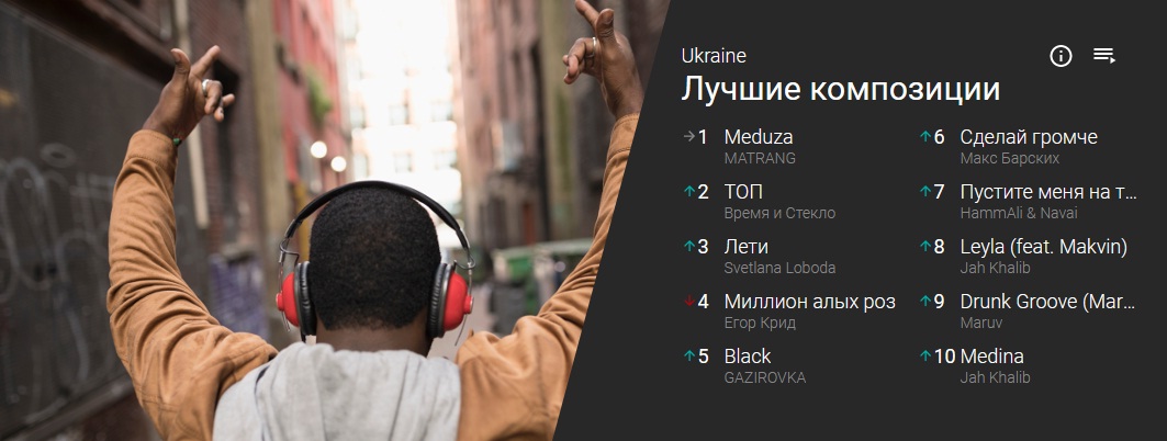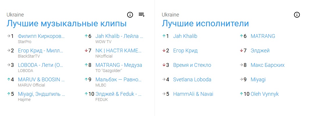 W W serwisie YouTube pojawiła się nowa sekcja " Muzyczne wykresy " z selekcje najpopularniejszych klipów i piosenki. Co więcej, listy odtwarzania zostały zestawione dla różnych krajów, w z czego Ukraina.