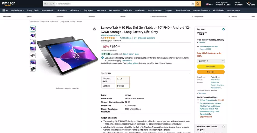 - Lenovo Tab M10 Plus (3rd Gen), 32 GB - $219.99